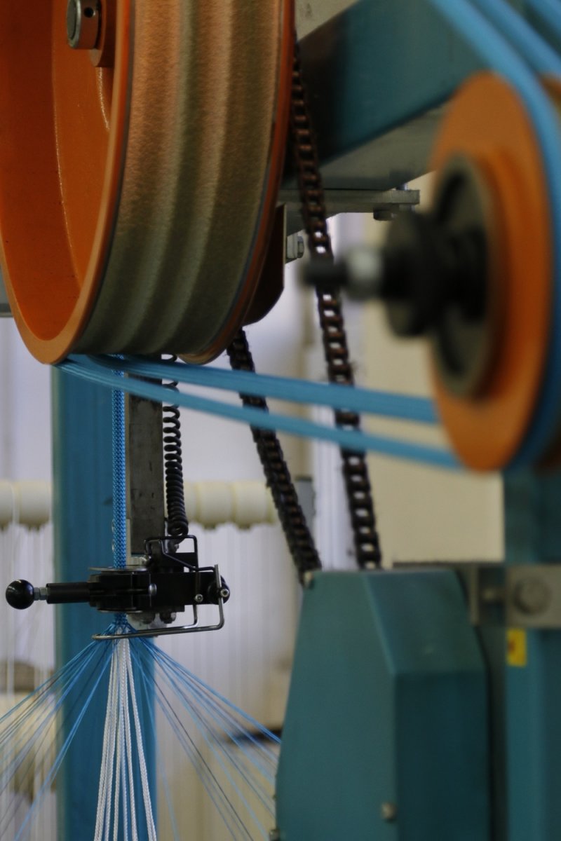 Když je proces srážení dokončen, pošleme jednotlivá vlákna do pletacích strojů, kde se stanou jádrem (neboli duší) a opletem. „Velkou výhodou našich lan je neustálá kontrola napětí ve všech vláknech,“ říká Radim. Díky kontrole napětí v každé nitce každého lana můžeme ručit za vyrovnanou kvalitu. Už jen kdyby se jednotlivé příze lana odvíjela z cívek stále stejnou rychlostí, měnilo by se v nich napětí postupně třeba kvůli tomu, že plná cívka má jiný průměr než zpola vymotaná. Super Tension Control je naše opatření, které napětí ve vláknech důsledně hlídá.
