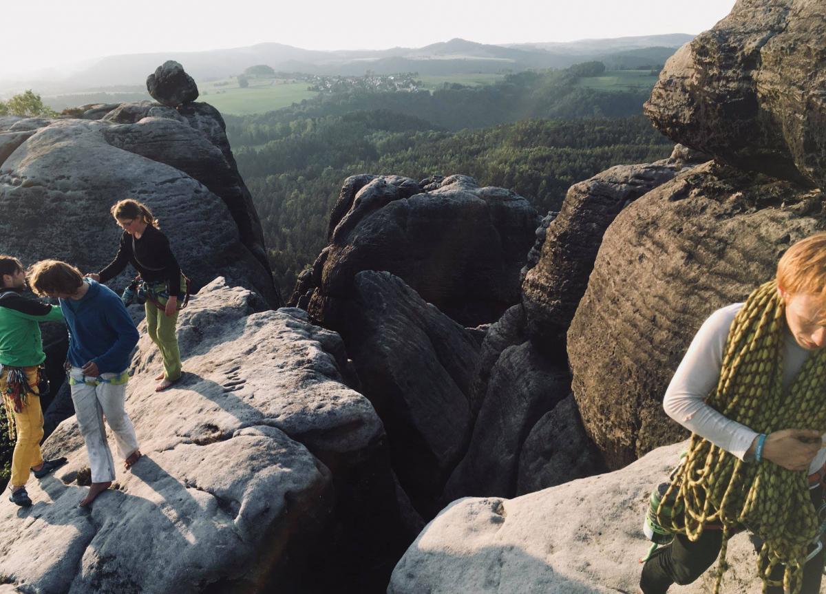 Saské pískovce jsou velké. Tak velké, že se skládají z několika podoblastí. Ve Schmilce a na Schrammsteinech se leze brzo na jaře, protože je tam hodně jižních stěn, zatímco na Affensteinech zase spíš v létě, protože tam je to naopak. Do Malého a Velkého Zschandu se chodí, když hledáš romantiku a chceš se trochu projít, a do Rathenu naopak když si chceš po lezení dát zmrzku a projet se na lodičce. V Bielatalu pravděpodobně skončíš, až budeš mít malé děti nebo až budeš chtít lezení v Sasku ukázat babičce s chodítkem anebo když budeš zkrátka jen potřebovat vystřízlivět po večírku u Pína Nežerky alias v Kempu pod Císařem. No a na stolové hory (Gebiet der Steine) se jezdí, když zatoužíš po zpestření, jinde už máš všechno vylezené anebo když se prostě nudíš, ale nechceš si zatím pořizovat medvídka mývala. Samozřejmě se jedná o hrubé zjednodušení, ale v Sasku je lezení tolik, že to musíme vzít trochu šmahem.