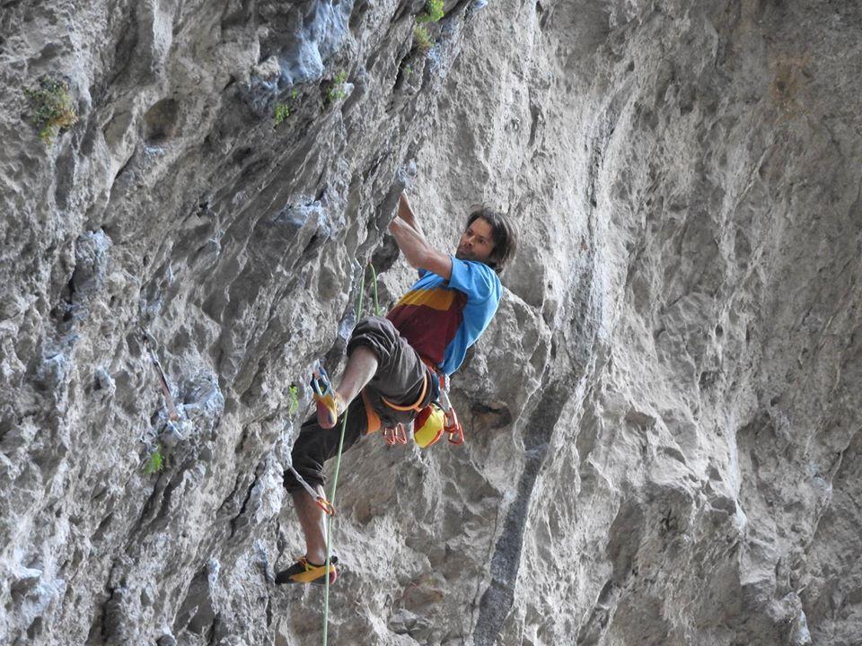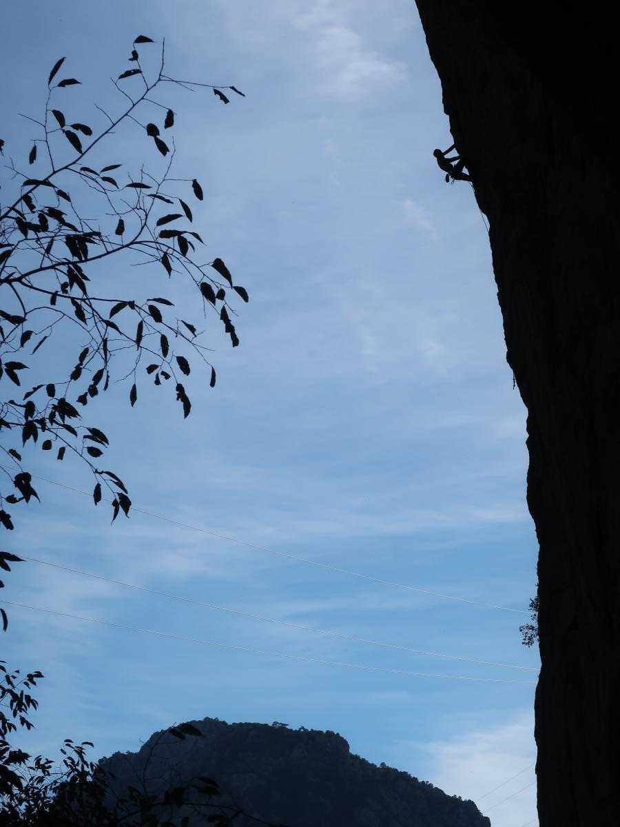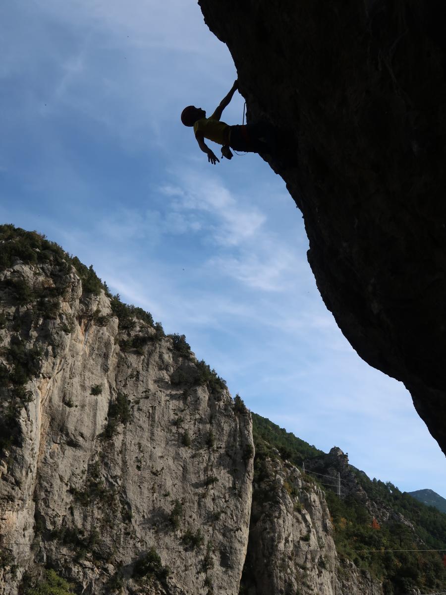 InstintSalvatge 7b+ – Test vytrvalosti.Pěkná a hodně dlouhá cesta, která vede mírným převisem až ke slaňáku v pětatřiceti metrech nad zemí.