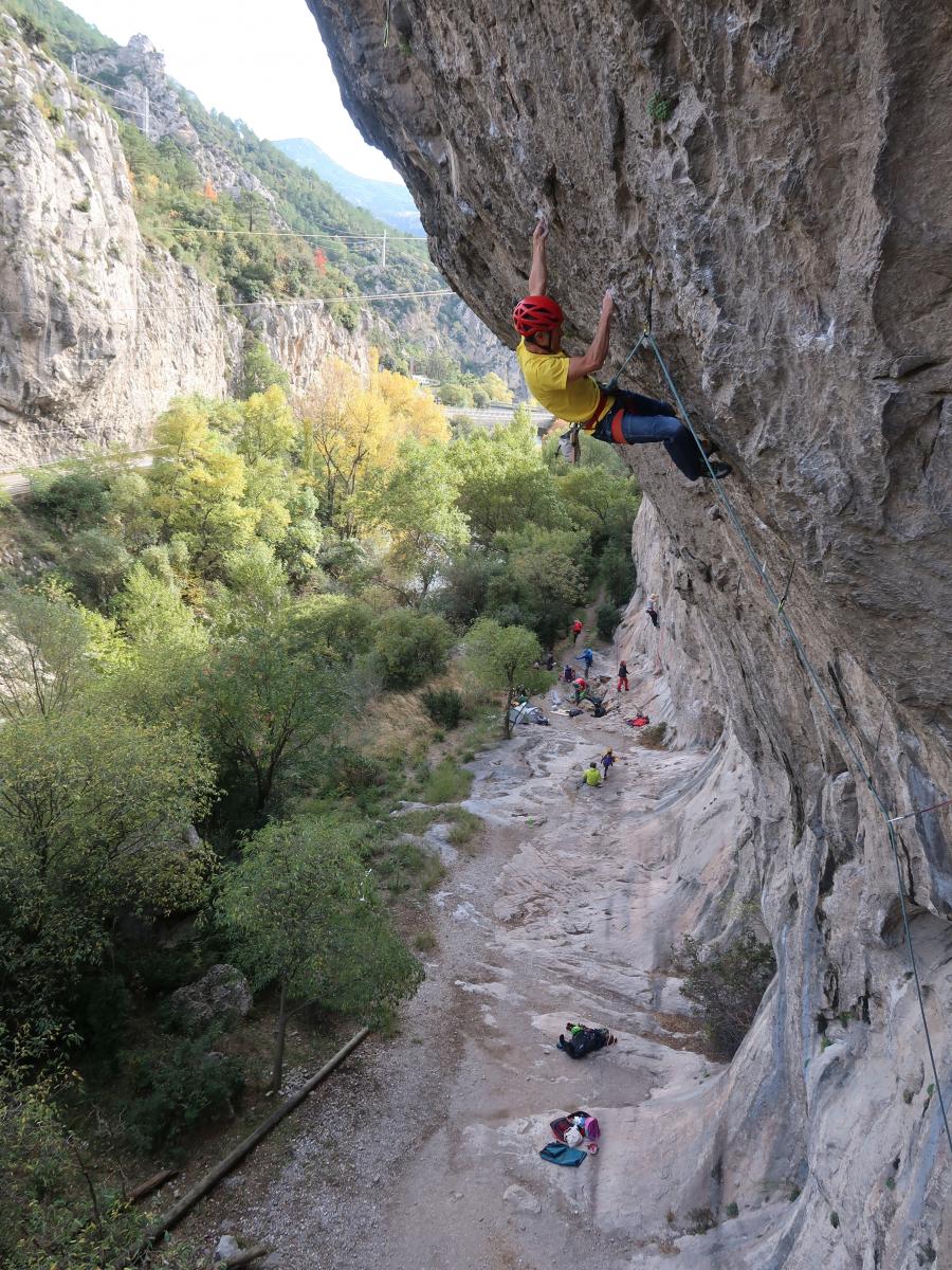 První vlnu adrenalinu ti do žil napumpuje přebíhání frekventované silnice, za kterou se nachází skály. Po téhle morálové rozcvičce už jsou to jen dvě minuty chůze. Plácky pod skalami jsou pohodlné a dá se tu pobývat i s dětmi. Tedy pokud jsou tak poslušné, aby se nevzdalovaly od rodičů a nezkoumaly sráz nad řekou Segre nebo již zmíněnou silnici.