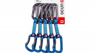 Klasický expreskový set s polyamidovou smyčkou a Falcon karabinami s vyšší světlostí zámku pro snažší cvakání lana i jistících bodů.