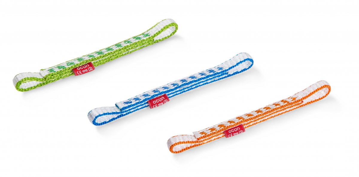 Die Schlinge ist der schwächste Teil der Expresse in Bezug auf Haltbarkeit und Beständigkeit. Im Gegensatz zu Karabinern ist die Schlinge in Abhängigkeit vom Material, aus dem sie besteht, anfällig für Beschädigung durch UV-Strahlung, Chemikalien oder Blasenbildung. Und gerade um diese Materialien geht es uns heute – es besteht ein Unterschied zwischen Schlingen aus Polyamid (PA) und solchen aus Polyethylen, die auch Dyneema®-Schlingen genannt werden.