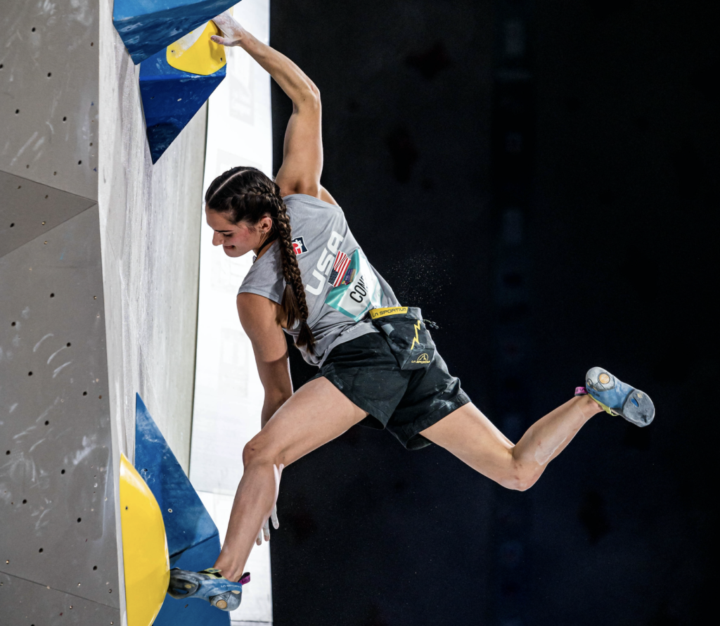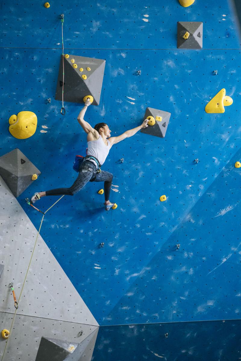 Nach der Qualifikation in Toulouse habe ich eine kurze Trainingspause eingelegt und bin auch draußen geklettert. Aber jetzt, sechs Monate vor den Olympischen Spielen, trainiere ich nur noch. Im Moment habe ich eine leichte Knöchelverletzung, daher widme ich mich dem Aufbau einer starken Basis. Erst dann befasse ich mich mit meinen Schwächen beim Wettkampfklettern. Da ich jetzt in Salt Lake City lebe, habe ich viele Möglichkeiten, Speed-Klettern, Schwierigkeit und Bouldern zu trainieren, und großartige Trainer, die mir bei der Bewegungsentwicklung helfen. In den nächsten Monaten geht es nur noch ums Klettern.