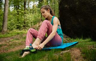 Perfektes Sitz-Start-Pad mit Option zum Reinigen Ihrer Kletterschuhe