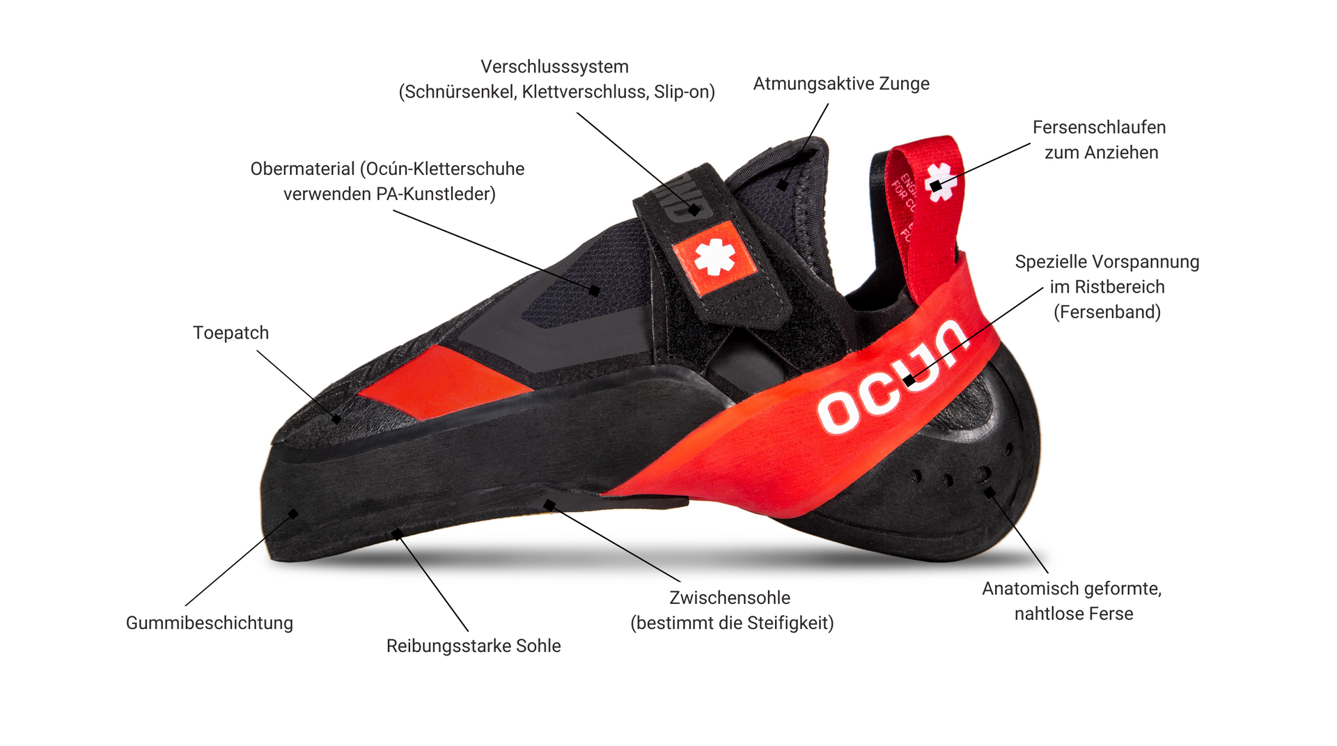 Grundlegende Parameter der OCÚN-Kletterschuhe