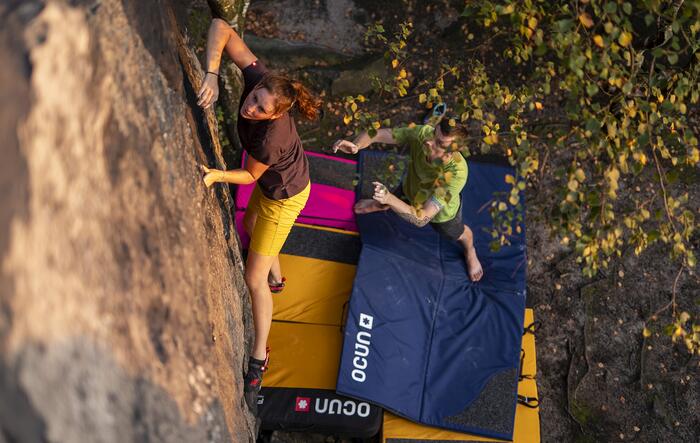 Perfect for covering gaps between crash pads, enhancing safety, and adding comfort, it’s an essential companion for climbers who value versatility and practicality. Whether you’re preparing for a sit-start, resting between climbs, or setting it up to sleep on at camp for the night, the Top Mat has you covered.